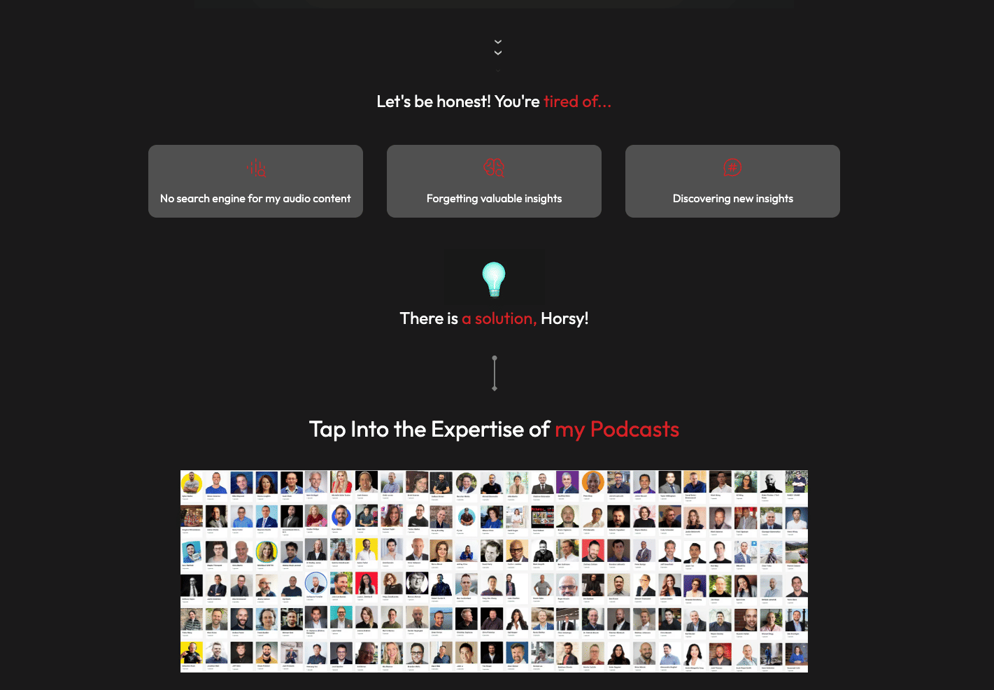 Type in any question and it will summarise the responses, and take you to the time stamp in all the podcasts which are relevant to your question.