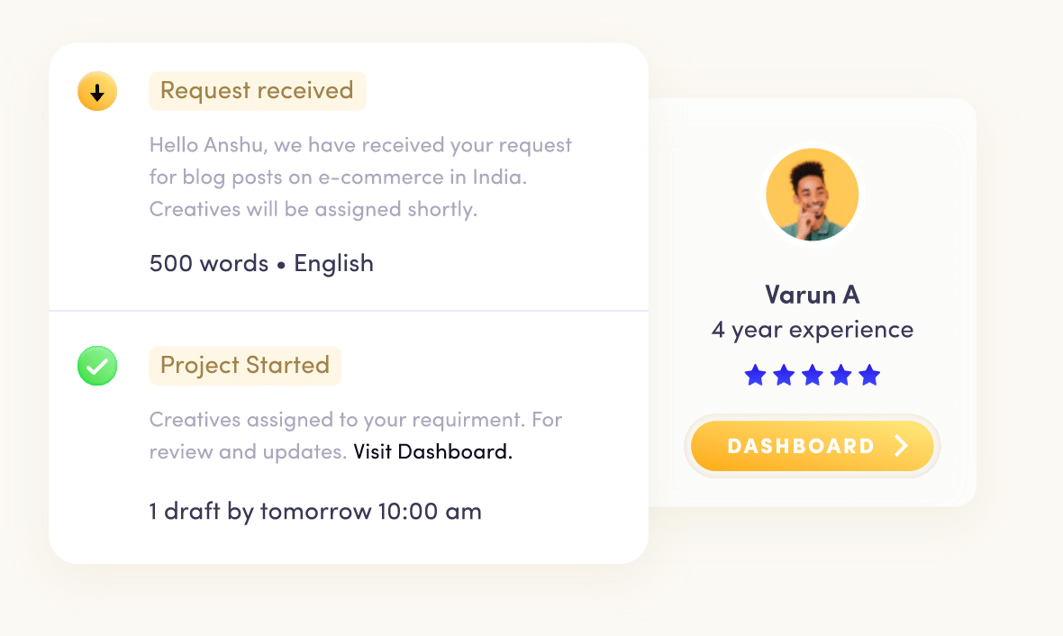 The creators don’t have to bid to get assigned to a project. Dhriti mentioned that it’s on the basis of priority. For instance, this is the preferred writer as per their recommender engine. If the writer doesn’t accept it (they may have something else to do or they don’t want to do it), then they will go to the next recommended writer, and so on. This is purely based on their own profile.