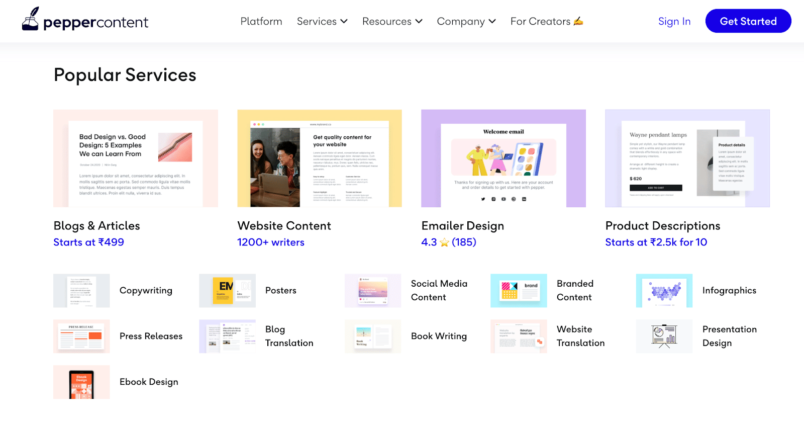 The good part about Pepper Content is that you can get any sort of content done. Be it any written content, any design, or any translation project. They’re also coming up with video projects. Any infographic that you want to get created, you can get it written, designed, and translated into different languages by their content creators.