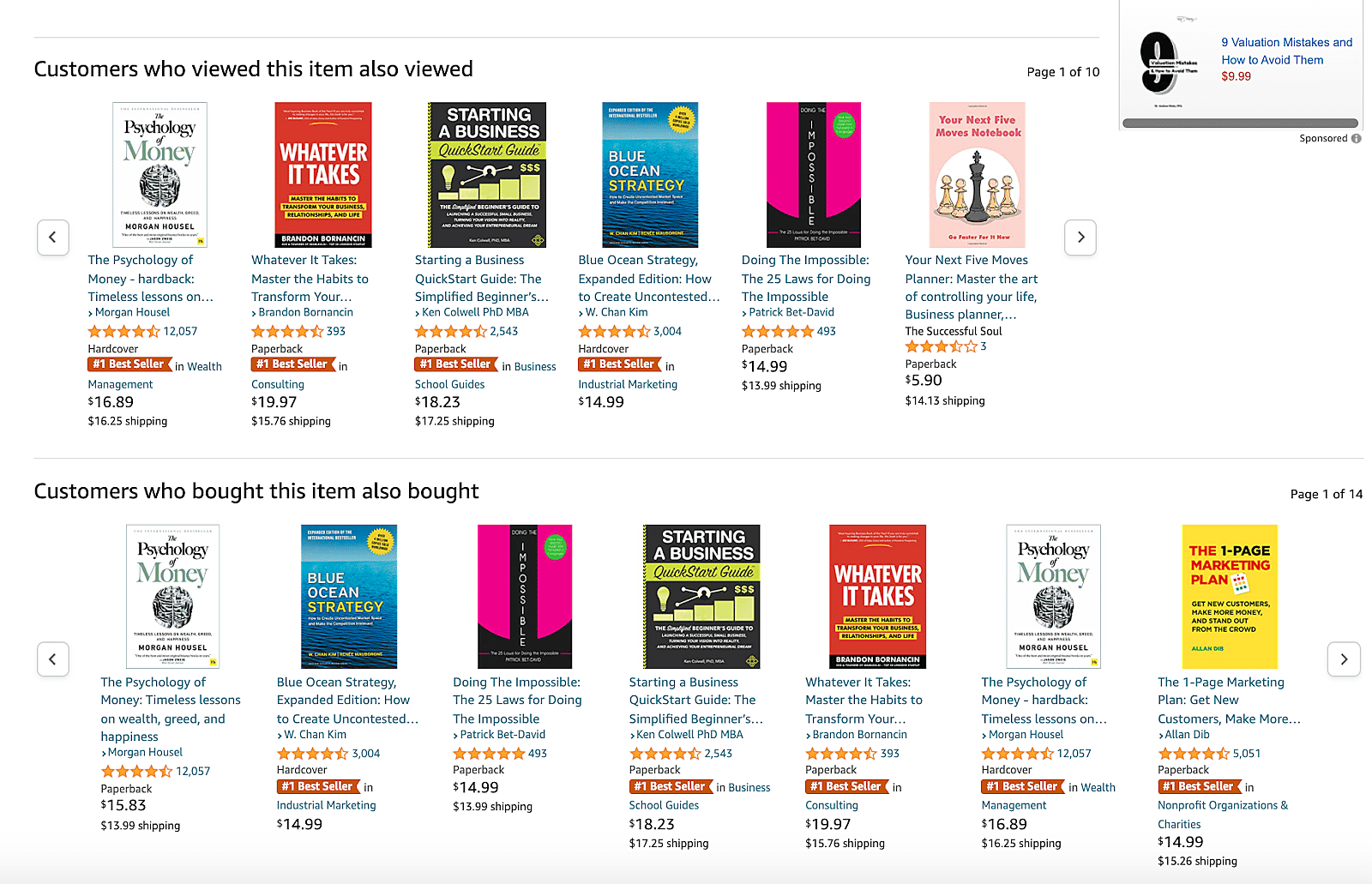 When you look at your product page and scroll down to the bottom, you’ll see that people who bought a certain item also bought this particular book. You can also do this with your competitors — you can go to their product pages and browse through the bottom part.